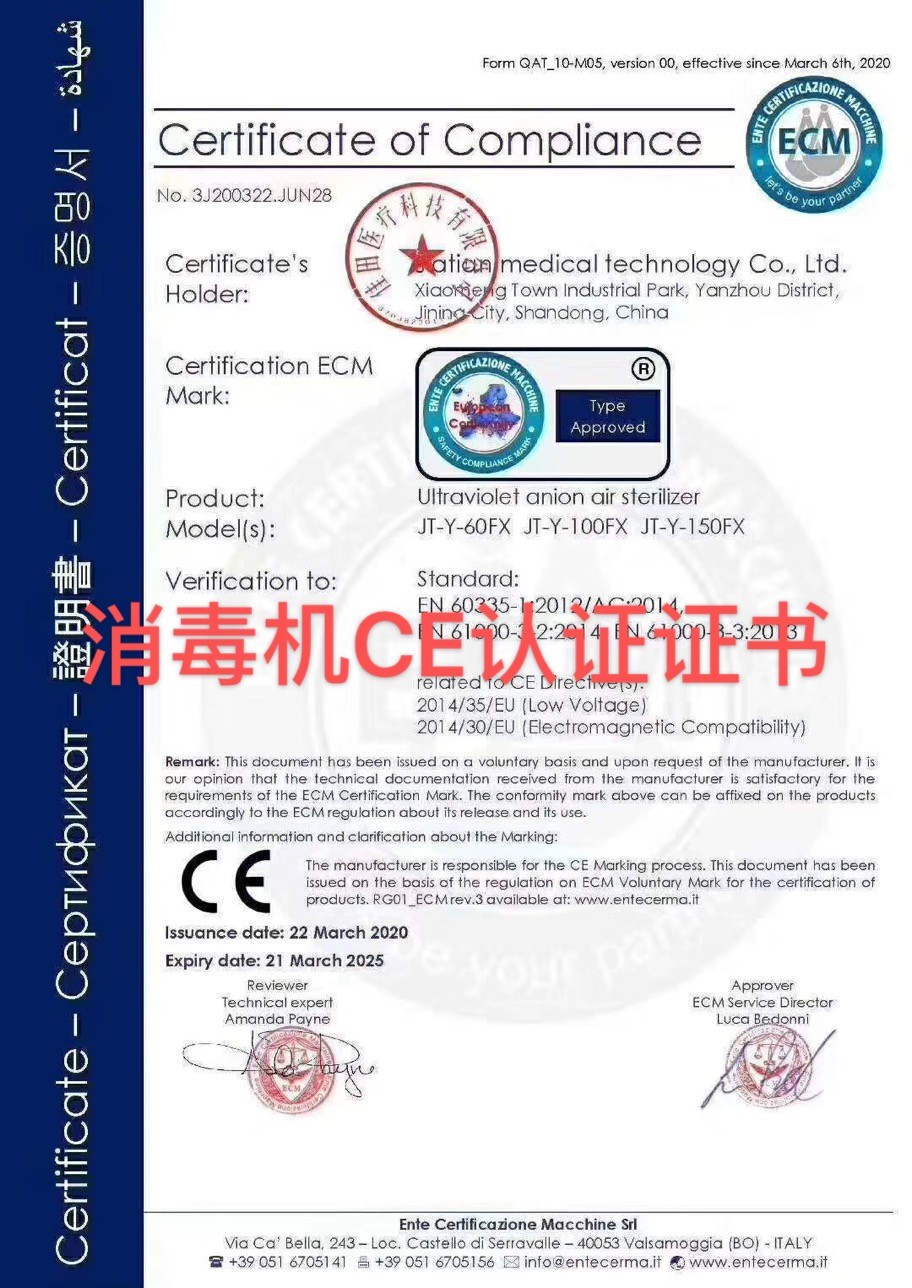 佳田醫(yī)療科技紫外線負離子消毒機取得了CE證書,可出口歐盟國家中國網(wǎng)2月5日訊國家......